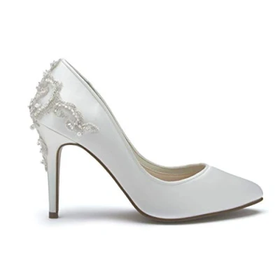 a highly decorated court, is adorned with beautiful embroidery and beaded detailing Beautifully-crafted from lustrous ivory satin sharply-pointed toe, a streamlined silhouette and an elegant stiletto heel Available in sizes 3-8 including half sizes