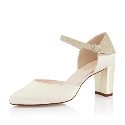 The Rainbow Club collection combines classic, fashion and glamour. With shimmering satin and elegant accents, the models of the Rainbow Club brand are not only an absolute eye-catcher, but also convince with the incorporated Soft Bliss, an inner lining, with the very highest wearing comfort. Particularly comfortable due to special foam padding (bliss) - walk like on clouds Colour: Ivory Cream | Upper: Satin | Inner: Synthetic | Heel height 7 cm Stylish bridal pump with medium heel making it one of the favourites among brides Perfectly matching shoes to your wedding dress - shoes dyed according to your wishes by our Colour Experts from Rainbow Club