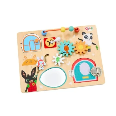 HANDS-ON LEARNING - This wooden toddler toy turns playtime into skill-building adventures, helping little one's develop fine motor coordination naturally. SENSORY EXPLORATION - Your baby will love this wooden busy board with knobs, clasps, and sliders on this sensory activity board designed for curious little fingers to explore. INDEPENDENT PLAY - Watch your child build confidence with this activity busy board for toddlers that encourage self-directed learning through engaging Montessori-inspired fun. BING MAGIC – Ideal for little fans of Bing, this toddler busy board brings beloved characters into educational play that keeps children entertained for hours on end. BUILT TO LAST - This wooden busy board has been crafted from sturdy wood to withstand enthusiastic play whilst supporting early development milestones., Manufacturer: Rainbow Designs