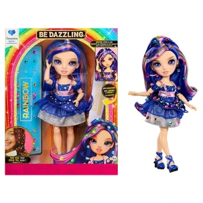 GENEVIEVE BLEUE DOLL: Genevieve, known as Gigi, brings cool-edge style, alternative fashion and expressive creativity to the Be Dazzling line; features silky blue hair, real eyelashes, glass-like eyes and a layered blue outfit BEDAZZLING FUN: Includes an easy-to-use bedazzling tool and sparkling gems; customise her hair and outfit to create looks that match her artistic, self-expressive style POSABLE FOR STORY PLAY: Fully articulated at the head, arms and legs; pose Genevieve writing lyrics, dancing to music, re-styling outfits or exploring new creative directions CREATIVE MUSIC BACKSTORY: Inspired by songwriting and alternative fashion; Genevieve takes cues from her favourite K-pop group and her past at a strict uniformed school where she styled her look differently every day WHAT'S INCLUDED: Includes 28cm doll, blue layered outfit, shoes, bedazzling tool, gems, comb and accessories; collect the Be Dazzling squad to expand your Rainbow High collection, Manufacturer: MGA Entertainment