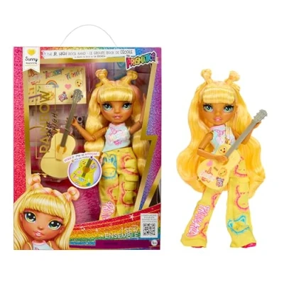 INSPIRES KIDS TO BE CREATIVE: Back when they were in Junior High, your favourite friends played in a rock band together. Each 23cm fashion doll comes with its own instrument and stickers for a personalised touch ROCK BAND INSTRUMENT: Sunny comes with a yellow guitar STICKERS TO CUSTOMISE: Includes stickers to personalise and decorate your instrument however you like ADORABLE FEATURES: Sunny is styled in her iconic yellow from head to toe, featuring gorgeous long, brushable yellow hair. Her charming youthful face sculpt, delicate long eyelashes, and captivating glass eyes add to her irresistible charm FLEXIBLE & POSABLE: Because Sunny is articulated, she is easy to pose for her rock band performances. Enjoy endless playtime with this doll WHAT’S INCLUDED: 1 fashion doll, a complete rock band outfit, instrument, stickers to customise the instrument, comb COLLECT THE RAINBOW: Bella, Sunny, Skyler, and Amaya KEEP UP WITH RAINBOW HIGH: Watch the latest online episodes and catch up with the previous ones. Just search for "Rainbow High" on your favourite streaming sites, Manufacturer: MGA Entertainment