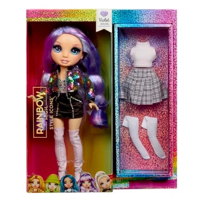 Rainbow High Style Icons Violet 28cm Fashion Doll with Long Brushable Hair, Comes a Second Outfit, Matching, and Pair of Shoes, Flexible 13 Points Articulation
