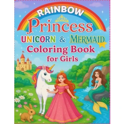 Rainbow Princess, Unicorn & Mermaid Coloring Book for Girls: 60 Magical Pages of Princesses, Unicorns Mermaids to Spark Creativity in Kids Ages 4 8