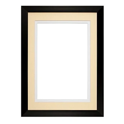Rainbow Range Black Matt Double Mount Photo frame/picture frame/poster frame with Real Glass Ivory on White 14"x11" for A4 pictures