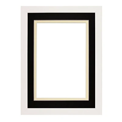Rainbow Range White Matt Double Mount Photo frame/picture frame/poster frame with Real Glass Black on Ivory 14"x11" for A4 pictures