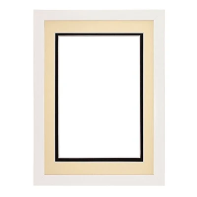 Rainbow Range White Matt Double Mount Photo frame/picture frame/poster frame with Real Glass Ivory on Black 14"x11" for A4 pictures