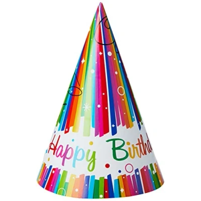 BIRTHDAY PARTY PAPER HATS: Make your celebrations extra special and delight every guest with these vibrant rainbow ribbon birthday party paper hats, perfect for all ages and occasions. EYE-CATHING RAINBOW ribbon DESIGN: Stand out and make a bold impression with these colorful and festive caps, featuring a playful pattern of rainbow ribbon that effortlessly elevate any party's ambiance. EASY TO WEAR & COMFORTABLE: Designed for hassle-free assembly, simply secure each hat with the built-in elastic band, offering a comfortable fit for everyone to enjoy throughout the event. BOOST YOUR PARTY DECOR & MEMORIES: Elevate your celebration atmosphere and capture joyful photos with friends and family wearing these cheerful rainbow ribbon birthday party paper hats – a must-have for creating unforgettable memories., Manufacturer: Unique Party