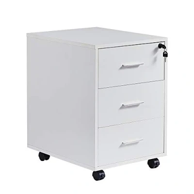 【Modern File Cabinet 】Office cabinet with wheels, overall dimension about 40×50×57.5cm(L×W×H), It is ideal for both home and office use with its neat and modern appearance 【Keep Everything In Order】Comprising 3 filing drawers, one lockable, offers you plenty of space, fit for A4 size documents, keep your office and home more Tidy, take and put your files methodical 【Mobile Wheels Design】 Modern design with lockable wheels to everywhere you want. 2 Lockable Rolling wheels design helps easy to move and stop without damaging your wood floor 【Storage Cabinet Sideboard for Home】 Can be used as a printer or scanner machine stand, side end table, console table, storage shelf, kitchen trolley cart and so on, provides ample storage space, works well in the office, kitchen, bedroom, cafe, restaurant, craft room, etc. 【Sturdy and Stable 】Thick wooden desk storage cabinet, strong enough to support heavy duty parcels up to 20-40lbs for different shelves. Help to clean and storage in Home and Office