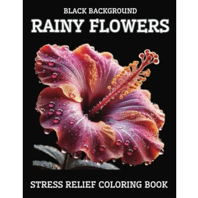 Rainy Flowers Stress Relief Coloring Book: Black Background Large Print Relaxing Pages With Beautiful To Calm Your Mind And Mindfulness