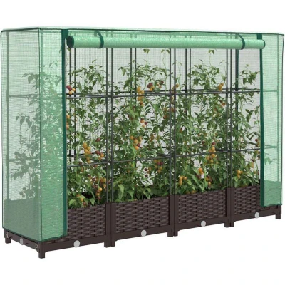 VidaXLThis raised bed with a greenhouse cover provides lots of growing space with its sturdy supporting frame.Sturdy construction: The raised bed, constructed from polypropylene, features a sturdy iron tube frame on top, enabling plants to grow and climb through it.Functional cover: The raised bed features a water-resistant polyethylene cover that protects your plants from extreme temperatures and keeps out insects, birds, and small animals.Practical design: The raised bed includes zippers for ventilation, allowing you to adjust the cover as needed. Additionally, it features ropes at the top, making it easy to secure the net to the tube.Rattan look design: The raised bed, featuring the rattan look design, adds a touch of natural charm to your outdoor living space.Wide applications: The raised bed provides ample space for your plants, vegetables, herbs, and flowers. You can use it in gardens, courtyards, balconies, and so on.