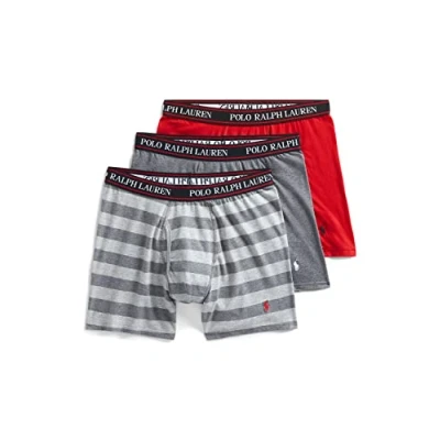 Ralph Lauren POLO Men's Stretch Classic Fit Boxer Briefs, Trunks & Long Leg Available, 3 Pack, Rl2000 Red/Charcoal Heather Andover Stripe/Charcoal Heather, XL