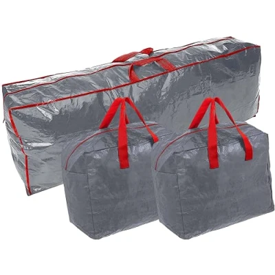 Ram® 3 x GREY Extra Large Christmas Tree Storage Bag With 2 Decorations For Baubles, Tinsel, String Lights