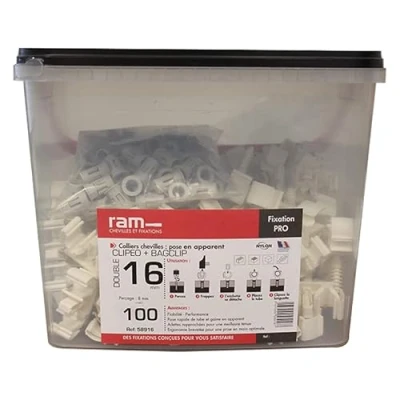 The grey clip is used for IRL tube fixings, on full and friable brackets when paired with the bagclip No need for separate anchors, screws or collars thanks to its built-in anvil Only a drill and hammer are enough Good hold thanks to its close fins Made in France., Weight: 3.6596735492 pounds, Manufacturer: Ram