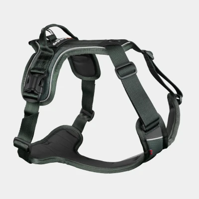 With adjustable straps around the neck and chest, it ensures a comfortable fit as your puppy grows, making it a smart long-term option. The harness is also great for dogs with a strong build, offering lightness and comfort. Featuring three leash attachment points, including a front point for mild anti-pull, it gives you plenty of control, too! There's also a loop under the belly for attaching a tracking line, plus a handle on the back to help guide your dog over obstacles or provide extra control. The robust Duraflex clips are easy to use and can be replaced if needed. Made with durable, water-resistant materials, the harness has Hypalon reinforcement in high-wear areas and reflective seams for nighttime visibility. The aluminium D-ring on the back adds strength, and the adjustable straps make sure it fits securely every time. Outer and inner material: Polyester ripstop Closed cellfoam Seatbelt-webbing Nylonwebbing Aluminium D-ring Duraflex buckles (bluesign approved) Hypalon reinforcement 3M reflective material 3 attachment points for the leash Wash guide: Machine wash maximum 30 degrees. Do not tumble dry Colour: Green