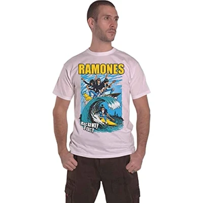Ramones Men's Rockaway Beach Short Sleeve T Shirt, White, X Large