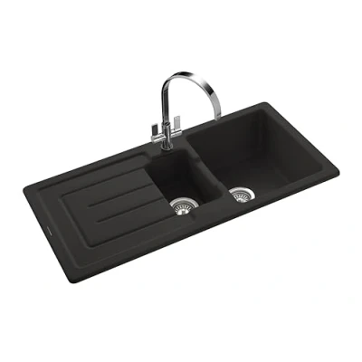 Rangemaster CAU10102MB/ Austell 1000500 1.5B Ceramic Black inc.Waste Tap, White