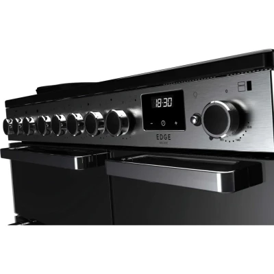 Rangemaster Edge Deluxe EDDL90EIGBLK/CM1 90 cm Electric Induction Range Cooker Black & Chrome, Silver/Grey,Black