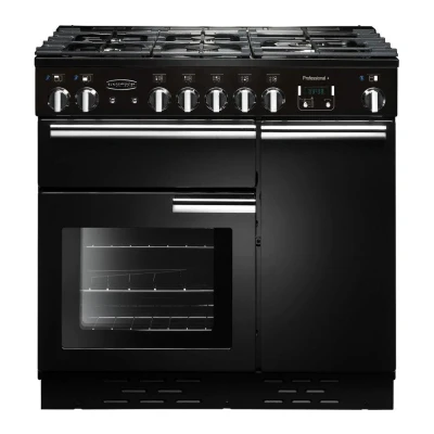 Create any meal The Rangemaster Professional+ 90 Dual Fuel Range Cooker has two large ovens, a grill compartment and a spacious hob with 5 burners. Perfect for a big family roast.The two fan ovens are designed for high-powered cooking, you can batch bake and power through huge meals in no time. Plus the seperate glide-out grill makes it easy to create culinary delights. Cooking with convenienceThe Professional+ 90 includes the innovative Handy Rack in the oven, which makes it easy to check on your food as it is cooking. Ideal when you're cooking your roast dinner, it pulls the tray out of the oven as you open the door, making it simple to check on your meat while it is cooking without needing to struggle with the roasting tin. Gracefully finished in black, this cooker will add a touch of class to your kitchen, while being exceptionally easy to keep clean thanks to the catalytic liners._____________________________________________________GAS INSTALLATION: This product requires installation by a qualified gas safe engineer, such as one of our Tech experts (available in the UK only).ELECTRICAL INSTALLATION: This product requires professional installation to a dedicated cooker circuit (identified by a big red cooker switch) by a qualified installer, such as one of our Tech experts.
