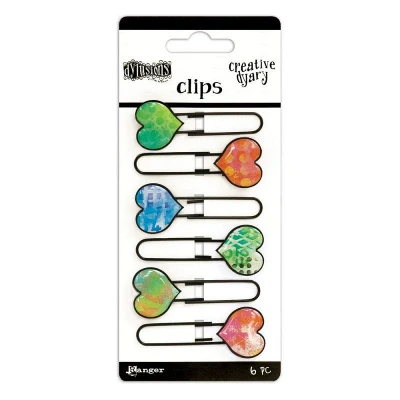 Dylusions By Dyan Reaveley - Creative Dyary Dylusions Creative Dyary Clips by Dyan Reaveley can be used as an embellishment or to fasten papers, notes and more into your Dyary. Heart shape epoxy clips feature Dyans artwork and will add her signature style to Dyarys, Journals, and more! Clips measure 7/8" x 2 3/16" DYE56652 MPN DYE56652