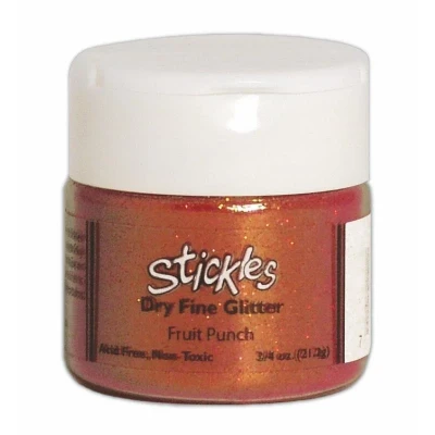 Fruit Punch - Stickles Dry Fine Glitter ( .75 oz. Shaker Jar). The same quality glitter in our Glitter Glue, loose in 3/4 oz. jars. Stickles Glitter is ideal to use with the new Ranger Sticky Embossing Powder, Inkssentials Wonder Tape or with other adhesives. Expand your glitter options into fabric, home decor and more. Available in our top 24 colors. 24 colors in 3/4 oz (21.2g) jars Use with Ranger Sticky Embossing Powder Use with Inkssentials Wonder Tape Acid free, non-toxic SDG35404 SDG35404 SDG35404 MPN SDG35404