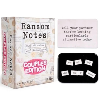 RANSOM NOTES: COUPLES EDITION: Get ready for a brand-new, standalone game inspired by the bestselling party game, Ransom Notes! This isn't your grandma's cozy word game, it's a magnet-based battle of wits that'll have you and your partner (and your couple friends!) cracking up. CRINGE CONFESSIONS: Ever wanted to describe your partner's high school style using only a handful of pre-selected words? Now's your chance! You’re forced to get creative with a limited pool of magnets, leading to side-splittingly terrible (and terribly accurate?) phrases. MAGNETS MAKE THE RULES: Forget being a vocabulary virtuoso! In Ransom Notes: Couples Edition, even the most eloquent wordsmiths are at the mercy of their magnet collection. This guarantees outrageously funny outcomes, proving that sometimes less is more. STANDALONE, NO BASE GAME REQUIRED: You get everything you need to kick off an unforgettable couples' game night right out of the box! We've packed it with 100 hilarious Prompt Cards, 660 premium Word Magnets, and 6 high-quality Submission Trays. No need for the original Ransom Notes, this one's ready to play! PERFECT PARTY GAME FOR DUOS: Looking for the ultimate addition to your next game night with other couples? Ransom Notes: Couples Edition is your answer. It's designed for groups of couples to create outrageously funny sentences together, guaranteeing plenty of laughs, eye-rolls, and maybe even a few "I can't believe you just said that!" moments., Manufacturer: Very Special Games