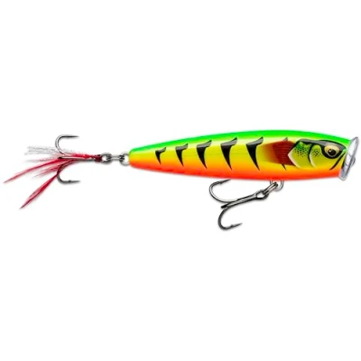 Rapala Skitter Pop Elite SPE95 Popper - Available in different colors - Weight: 17g - Length: 10cm - Balsa wood body - Loud and deep plop sounds - Durable construction - Lead free - VMC® 7554 2X black nickel treble hooks - Tail treble with springs With weight on the tail, the Skitter Pop® Elite casts far and steady and jumps over the surface of the water with loud and deep bangs! Designed for all kinds of predatory fish, the Skitter Pop Elite’s high-quality balsa wood construction allows for multiple presentations. The Skitter Pop Elite’s reinforced construction and modern freshwater and saltwater finish lure fish and last a long time.