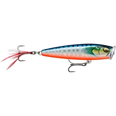 Rapala Skitter Pop Elite SPE95 Popper - Available in different colors - Weight: 17g - Length: 10cm - Balsa wood body - Loud and deep plop sounds - Durable construction - Lead free - VMC® 7554 2X black nickel treble hooks - Tail treble with springs With weight on the tail, the Skitter Pop® Elite casts far and steady and jumps over the surface of the water with loud and deep bangs! Designed for all kinds of predatory fish, the Skitter Pop Elite’s high-quality balsa wood construction allows for multiple presentations. The Skitter Pop Elite’s reinforced construction and modern freshwater and saltwater finish lure fish and last a long time.