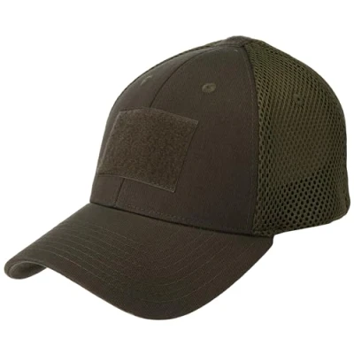 50% cotton/50% polyester 6 panel structured Low crown flex cap Air mesh rear panels Imported item