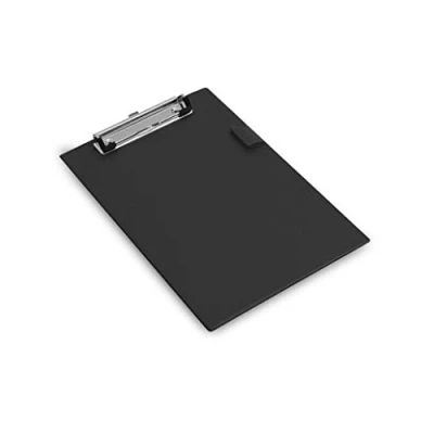 STANDARD CLIPBOARD - Black A5 Standard Clipboard, a practical addition to offices, warehouses, hospitals, classrooms and sports centres SMOOTH WRITING SURFACE - Made from durable board with black PVC coating for a sturdy and stable writing surface and easy wipe-down cleaning STRONG METAL CLIP - High-capacity, holding up to 90 sheets of 80gsm paper, low-profile clip convenient for stacking with protective plastic corners to provide extra grip without creasing or damaging paper EASY ORGANISATION - Handy pen holder inside the spine, rounded corners for a comfortable hold and a retractable hanging hook for easy storage CONVENIENT USE - Useful for school projects and field trips, surveys and questionnaires, hospital records, memos, tickets, receipts, artwork, menus and much more