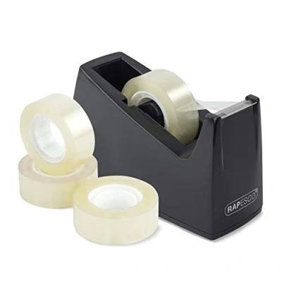 Rapesco 1619 300 Tape Dispenser and 4 Rolls, Black