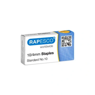 CONTENTS - Pack of 1000 type 10/4mm rust-resistant galvanised staples, designed for use in compact staplers KEY ELEMENTS - Premium quality, rust-resistant, heavy-duty staples with chisel points that provide easy penetration and a strong hold COMPATIBILITY - Compatible with the Rapesco Pocket, Bug and No.10 Mini staplers and others, which take type 10/4mm staples (please always check compatibility with your tool before purchasing) EQUIVALENT TO - Rexel No.10, Rapid No. 10, Leitz type 10 and Novus No. 10 staples USES - Popular for light-duty stapling tasks, commonly used in compact staplers and are ideal for binding small stacks of paper