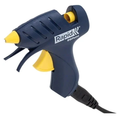 General description The Rapid RPDPOINT EG Point Glue Gun is a compact and precise tool designed for DIY and craft projects. It features an extended nozzle for accurate application and operates at a power of 80W. The glue gun can be used cordlessly for 3-4 minutes, making it suitable for detailed work and hard-to-reach areas. It is compatible with 7 mm glue sticks and has an improved built-in stand for better stability during use. Technical specifications Power: 80W (10V) Heating Time: Approximately 10 minutes Tip Diameter: 0.5mm Glue Output: 150g/h Operating Temperature: 170 to 200°C Material: ABS plastic and metal Compatibility and accessories Compatible with 7 mm glue sticks Installation Insert a compatible glue stick into the rear of the gun Plug in the device and allow it to heat up for about 10 minutes before use Usage Press the trigger to dispense hot glue for precise application Use the cordless mode for detailed or hard-to-reach work, reconnecting to the power cord as needed