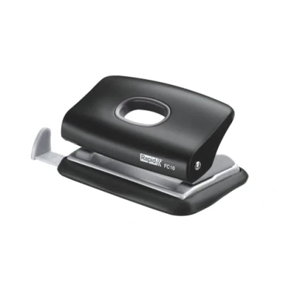 Stylish mini 2 hole punch for punching up to 20 sheets of paper (80gsm), Ideal for punching smaller documents at home, school or college Compact design making it portable and easy to store, Adjustable guide bar with markings for paper sizes from A6 portrait up to A3 landscape for perfect paper alignment, Easy to empty waste tray in the base to prevent spillages Easy to empty waste tray in the base to prevent spillages, Ergonomic handle for comfortable use, Non-slip base to prevent movement when in use and damage to your desk Made from strong metal with a plastic handle and base, High quality sharp cutters for excellent results, 80mm hole spacing with a 5.5mm hole diameter, 5 year guarantee Contents: 1 x Rapid Fashion FC10 Mini 2 Hole Punch, Metal and ABS Plastic, Dimensions (WxHxD): 76 x 43 x 110mm, Weight: 150g, Black, 23638501