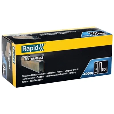Rapid High Performance Staples for Dense Materials, Narrow Crown No. 606, Leg Length 18mm, Staple Gun Staples, Resin Coated Galvanised Steel, 4000 Pieces, Boxed (11897602)