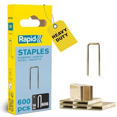 Rapid High Performance Staples for Dense Materials, Narrow Crown No. 606, Leg Length 18mm, Staple Gun Staples, Resin Coated Galvanised Steel, 600 Pieces, Blister (40109529)