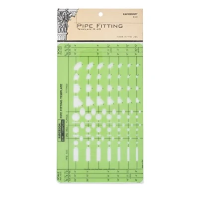 Includes symbols for pipe O.D., end bell, flange and fittings Features symbols in seven sizes Contains six scales: 1/8", 1/4", 1/2", 3/16", 3/8"., 3/4", = 1' scale Translucent green template Made in USA