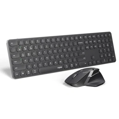【Multi-Device and Multi-OS Wireless Combo】The keyboard and mouse offer a seamless switching experience among up to 4 devices, including laptop, desktop, tablet, or smartphone, via the multi-mode connection (2.4GHz/Bluetooth 5.0/4.0). This eliminates the need to tediously swap and reconnect the keyboard and mouse repeatedly. It demonstrates excellent compatibility with multiple OS. Whether it's Windows, Mac, Linux, or Chrome, effortless switching can be achieved with a simple press of a button. 【Quiet and Comfortable】Featuring RAPOO’s classic blade-series E9550L ultra-thin keyboard and MT760SE ergo mouse, this keyboard mouse combo delivers a fluid, precise and quiet typing and clicking experience. The 0.2-inch ultra-slim keyboard provides a natural typing angle for your wrist (palm rest is no longer needed), and the ergo mouse reduces hand strain over heavy working hours. 【110-Key Complete Layout】A standard keyboard with number pad and all the keys you need, the well-spaced chiclet keys deliver fast fluid laptop-like typing, the 12 multimedia hotkeys provide quick access to most widely used functions such as play/pause, volume +/-, email --- Windows and Mac OS dual-system supported. The latest version has device and capitalization indicator lights for easy identification of the typing device and avoiding uppercase/lowercase confusion. 【7-DPI Adjustable Ergo Wireless Mouse】Silhouette crafted shape for natural wrist posture, ergonomic palm grip and thumb rest reduce hand strain over long periods of work. With 7 preset DPI (800/1000/1200/1600/2400/3200/4000) switchable for perfect tracking on different resolution monitors. 【Rechargeable with 90-Day Battery Life】Upgraded with our latest low-power technology, the 9560M Bluetooth keyboard and mouse can run up to 90 days on a full charge. In addition, the USB-C supports a whole day use on a 10-minute fast charging. What’s more, we’ve also added a battery indicator for better power management. Experience a enhance convenience, reliability, and stability with RAPOO’s latest blade-series keyboard mouse set.