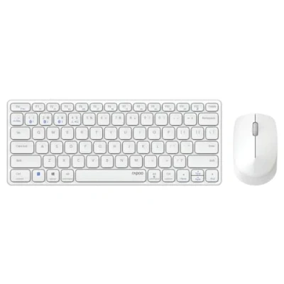 Rapoo Blade 9600M Multi Mode Wireless Rechargeable Keyboard Mouse Kit (AZERTY Keyboard, 3 Button Mouse, Bluetooth+WiFi, Ideal for PC, Laptop, Mac) White