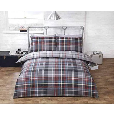 Rapport Hamilton Check Duvet Set Grey, King (Reversible)