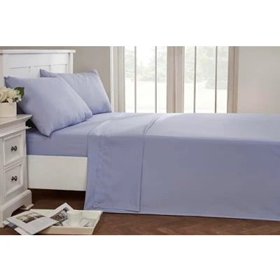 Double Flat Sheet Size: Double 228 x 254 cm Colour: Sky Materials: 50% Cotton , 50% Polyester Care Instructions: Machine Or Hand wash, Wash dark colours separately, Wash before first use