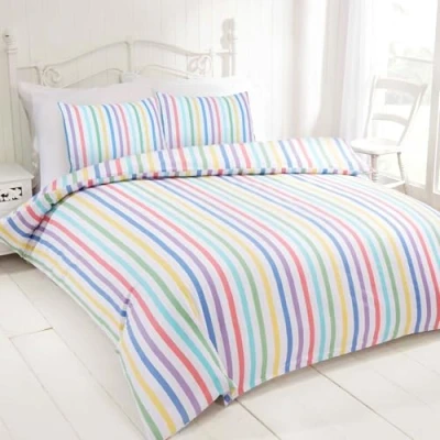 Rapport Home Brushed Cotton Flannelette Candy Striped 100% Super King Duvet Cover Set