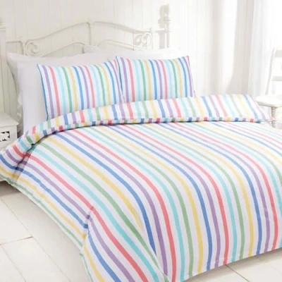 Rapport home Brushed Cotton Flannette Candy Striped 100% King Duvet Cover Set