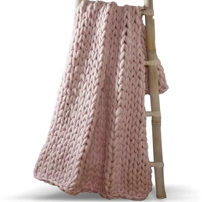 Keep warm with this beautiful modern chunky knit throw during the colder months Contents: 1 x Blush pink chunky hand knitted throw (120 x 150cm) Material: 60% polyester 40% acrylic This throw is sure to be the perfect addition to any room of your home