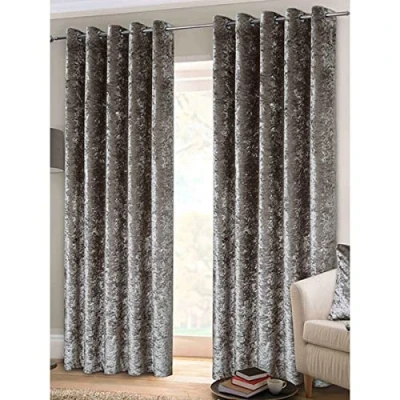 Pair of Luxury 'Crushed Velvet' Eyelet Curtains w/ matching tiebacks Size: 46" x 54", Colour: Silver Materials: Face - 100% Polyester: Lining - 100% Polyester Microfiber Care Instructions: Dry clean only Great British design