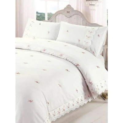 Rapport Home Duvet Quilt Cover Floral Lace Trim Embroidered Bed Set, Polyester Cotton, Cream, 2 pcs, Single,35.9x25.5x2.9 cm