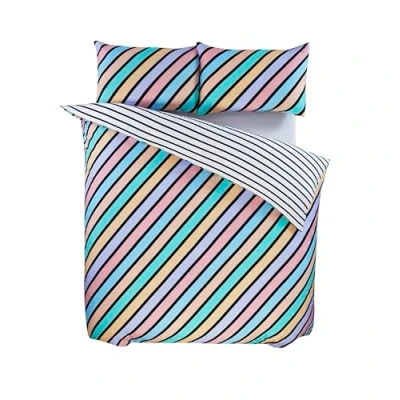 Rapport Home Microfibre Duvet Cover Set Striped Pastel Coloured Reversible King Bedding