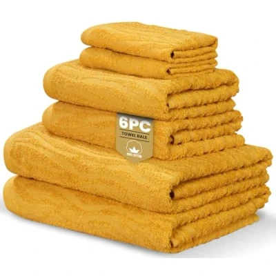 Complete 6-Piece Set: Transform your bathroom into a coordinated retreat of comfort and style with a full matching towel collection, including 2 plush face cloths (30x30cm), 2 highly absorbent hand towels (50x85cm), and 2 generously sized bath towels (70x120cm) — offering perfect balance for everyday luxury and guest-ready appeal. Premium 100% Cotton Comfort: Enjoy the soothing touch of spa-quality towels woven from pure, natural cotton. Crafted at a substantial 500gsm weight, they deliver superior absorbency, faster drying, and a wonderfully soft texture that pampers your skin after every shower or bath. Elegant Safari Design: Inspired by natural beauty and modern simplicity, the intricate Safari weave in a refined Bale Mustard Yellow hue adds an air of sophistication and warmth to any bathroom setting, seamlessly blending classic design with contemporary elegance. Sustainable & Safe Choice: Responsibly made with Better Cotton Initiative (BCI) certified yarn and Oeko-Tex Made in Green certification, ensuring your towels are produced ethically, free from harmful substances, and kind to both your skin and the planet. Durable & Easy Care: Engineered for long-lasting quality and everyday convenience, these towels remain luxuriously soft, vibrant, and resilient even after repeated washing. Machine washable and quick to dry, they offer lasting comfort and enduring style for your home.