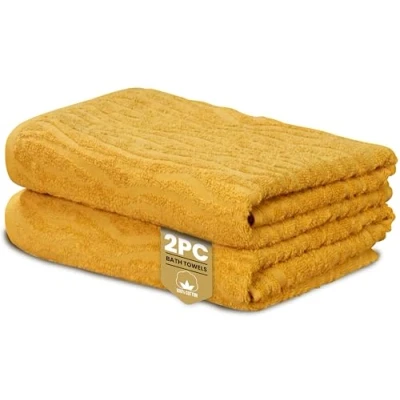 Premium Softness & Absorbency: Immerse yourself in the luxurious comfort of 100% pure cotton towels, crafted with a rich 500gsm weight for superior plushness and quick-drying absorbency. Experience spa-level softness that pampers your skin after every bath or shower. Elegant Safari Design: Transform your bathroom into a space of timeless sophistication with the intricate Safari weave pattern. Its woven texture adds depth, refinement, and a subtle touch of grandeur to any interior style. Generous Size & Convenient Pair: Each set includes two generously sized bath towels (70x120cm), designed for full coverage and daily comfort. Perfectly balanced between absorbency and lightweight usability, they wrap you in softness while drying quickly and efficiently. Sustainable & Safe Choice: Responsibly crafted using Oeko-Tex Made in Green and Better Cotton Initiative (BCI) certified materials, ensuring each towel is ethically produced, free from harmful substances, and gentle on both your skin and the planet. Vibrant Color: Refresh your bathroom with the calming allure of the Mustard Yellow hue — a serene tone that evokes tranquility while harmonizing beautifully with both neutral and modern interiors.