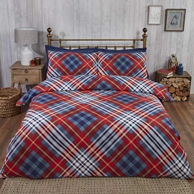 Rapport Home Tartan Brushed Cotton Super King Duvet Cover Set Red