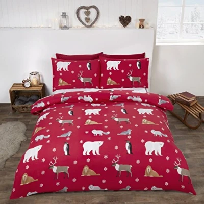 Double duvet cover and matching pillowcase pair Size: Double (200 x 200 cm); Colour: Red Materials: 100% Brushed Cotton Care Instructions: Machine washable, wash before first use, dark colours separately Great British design